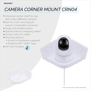 使用 Brainwavz 倾斜通用安全架将您的相机安装在任何房间的角落! 该架子旨在将安全摄像头牢固地固定到位,并包括一个 1/4 英寸螺栓和安装槽,用于锁定兼容的摄像头。让您放心,您的摄像头处于最佳位置以实现最大视野,而且它不会'不会被意外碰撞或移动。